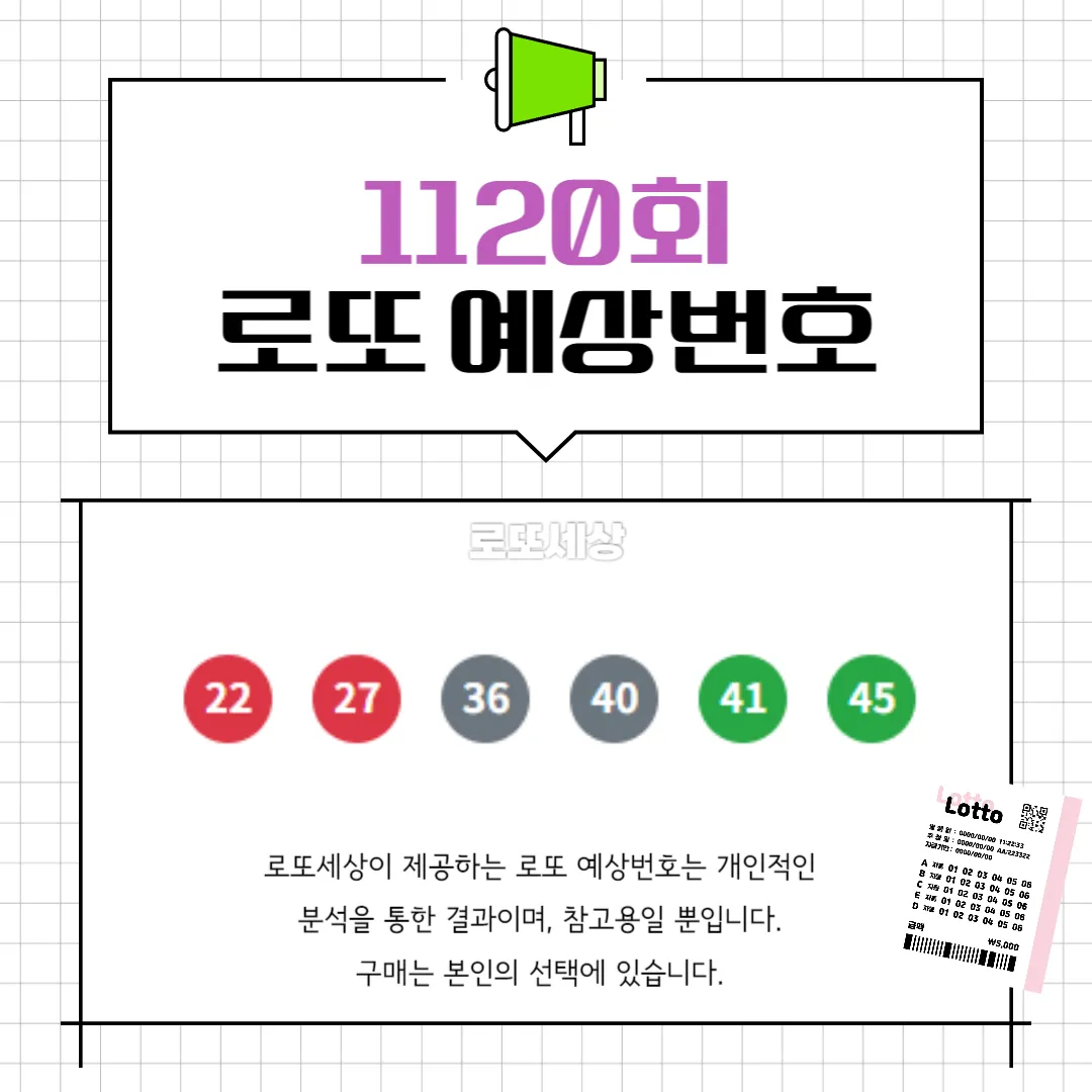 1120회 1등 로또 예상번호는 본문 중간에 위치한 '1120회 로또 예상번호' 섹션에서 확인하실 수 있습니다.
